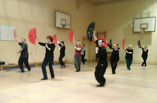 A poniżej zdjęcia z ćwiczeń grupy początkowej oraz grupy wykonującej formę z Wachlarzem Tai Chi.![]() |
