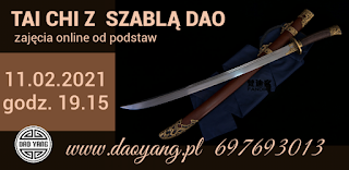 Rok 2021 w Szkole Dao Yang jest rokiem Szabli. Dlatego już 11.02.2021 rozpoczynamy nowe zajęcia Tai Chi online z Szablą Dao. Nauka od podstaw dla osób, które pierwszy raz zetkną się z tego rodzaju praktyką, jak i dla uczni zaawansowanych. Na zajęciach pokażemy jak wykorzystać ruchy do pracy nad ciałem, by ćwiczenia przyniosły jak największe korzyści. Nauka formy z Szablą może służyć zarówno jako ćwiczenia zdrowotne oraz jako samoobrona.